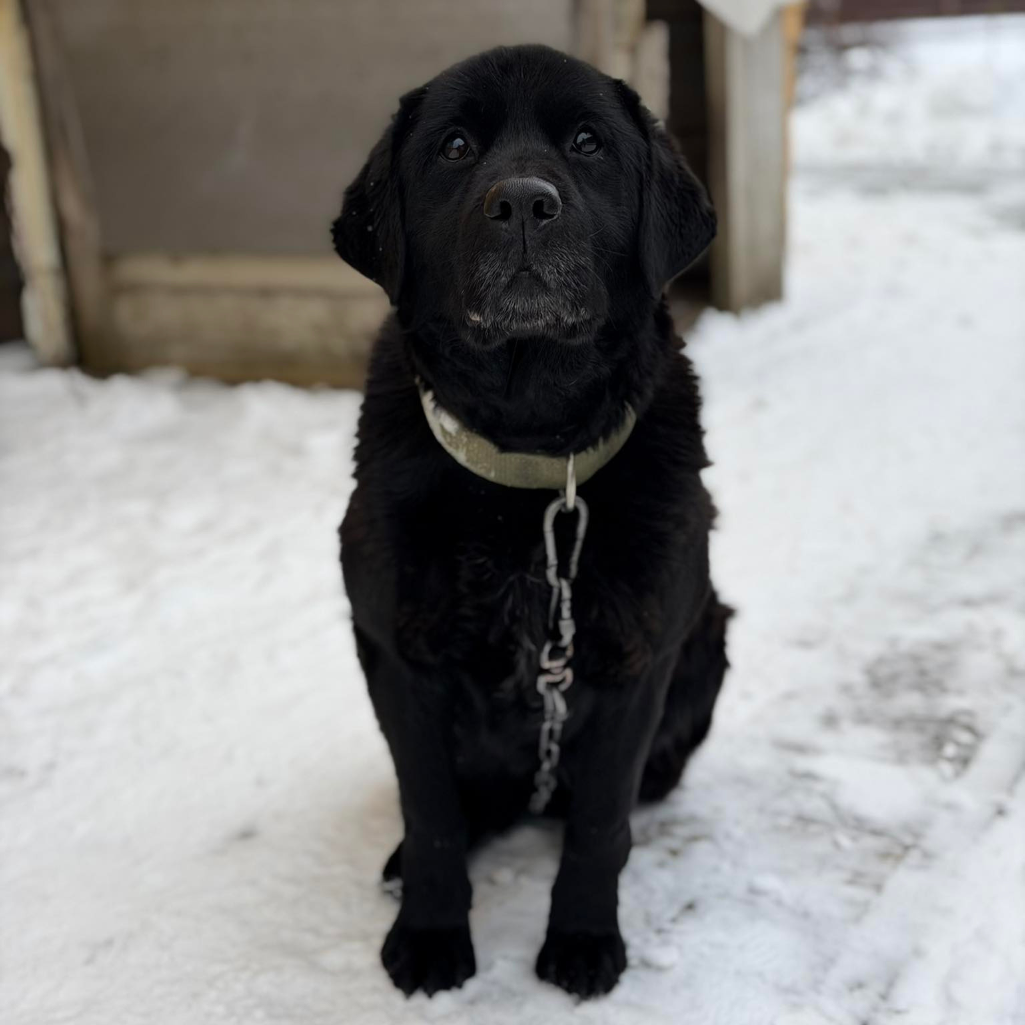 Чёрная шерсть почти сливалась с тенью, и только глаза, влажные, тёмные, внимательные, неотрывно следили за каждым движением вокруг, не с надеждой и не со страхом, а с чем-то гораздо тяжелее, с памятью. Цепь на ошейнике лежала на снегу, словно продолжение судьбы, не звеня и не сопротивляясь, как будто давно поняла, что её не спросят, хочет ли она здесь быть.