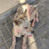 Leżał na boku, z wyciągniętymi łapami, jakby dawno przestał czuć, że należą do niego, jakby ciało stało się czymś obcym, ciężkim i zbędnym, a pod skórą zbyt wyraźnie rysowały się kości, nie w sposób szokujący, lecz boleśnie szczery, przypominający, jak wiele potrafią zabrać czas i obojętność. W kilku miejscach sierść zniknęła, odsłaniając szarawą skórę wypaloną słońcem, a cała jego postawa nie przypominała ani odpoczynku, ani snu, raczej ostateczne zatrzymanie, ciche i bez protestu, jakby po prostu postanowił, że dalej już nie pójdzie.
