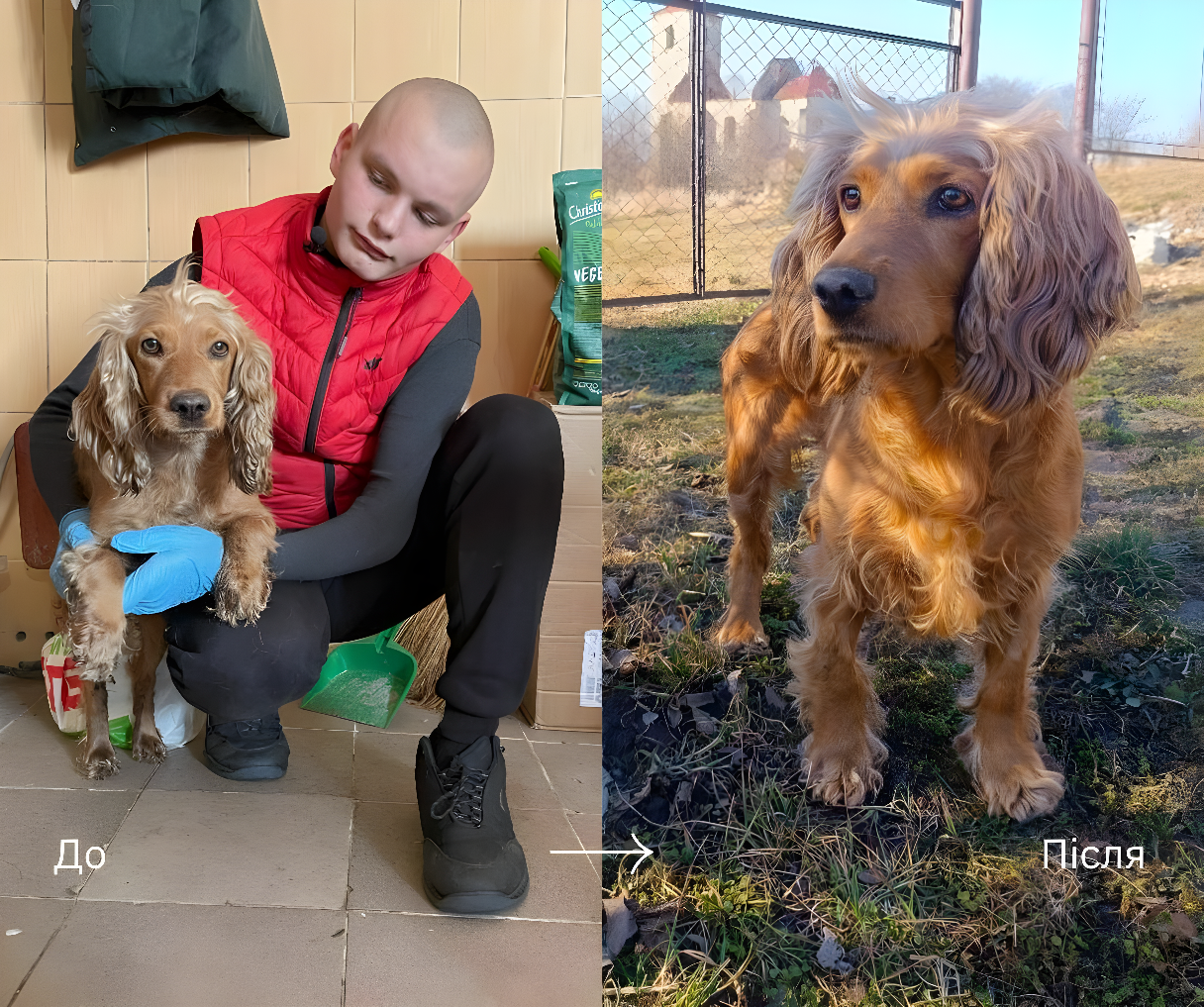 Юрий, один из волонтёров, не стал подходить сразу, он просто сел на землю неподалёку, не делая резких движений, словно понимая, что перед ним не просто собака, а целый мир, который слишком долго жил в страхе. Он сидел молча, и это молчание было странно спокойным, в нём не чувствовалось давления, и именно это стало для Ляли первым сигналом, что сейчас может произойти что-то иное.