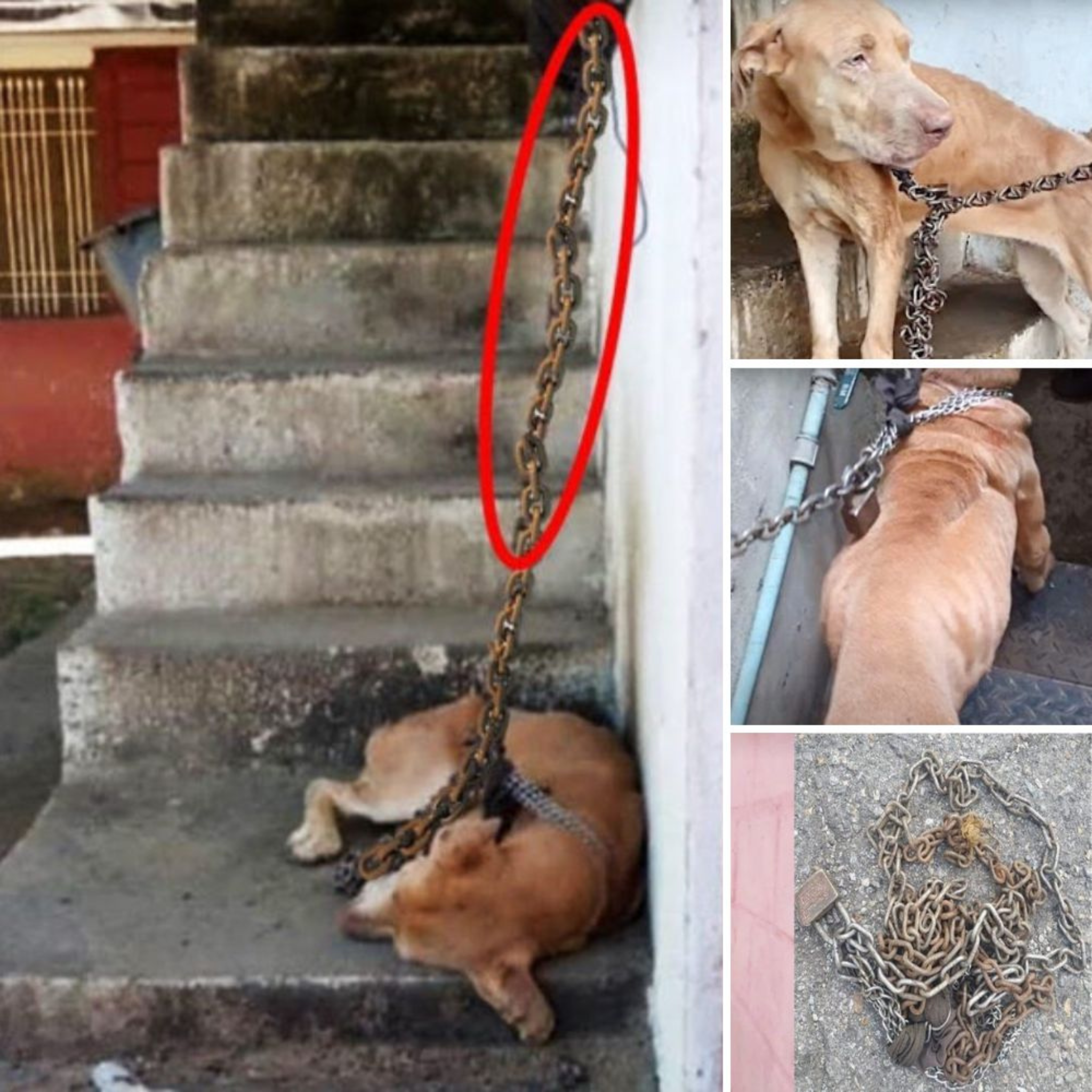 Под лестницей, в углу, где почти не доходил свет, лежал пёс. Рыжеватый, потускневший, словно выгоревший временем и ожиданием. Он опирался виском о бетон, а от его шеи тянулся тяжёлый, старый цепной след, такой грубый и ржавый, что он казался частью стены, частью этого двора, частью забвения. Это был не просто предмет. Это было напоминание о том, что его здесь оставили.
