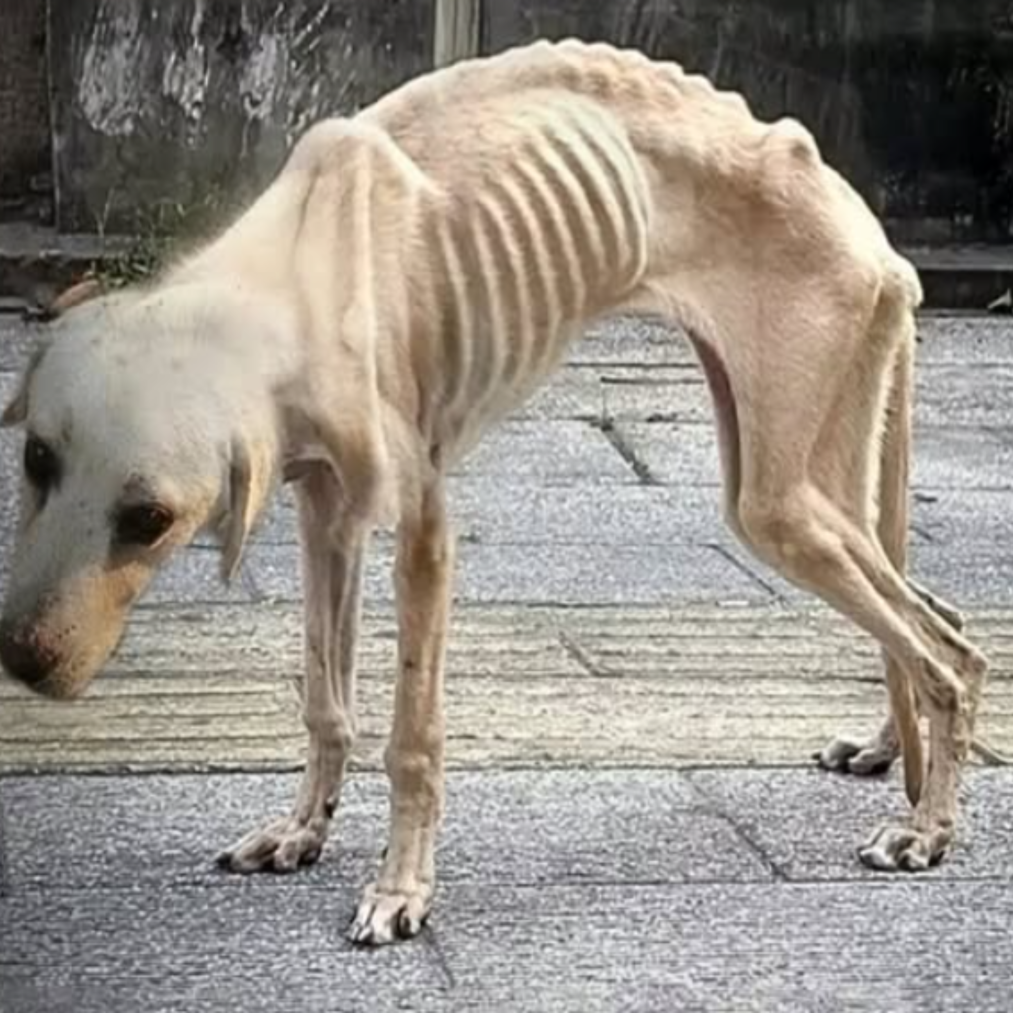 Nie leżała i nie poruszała się nerwowo, nie próbowała zwrócić na siebie uwagi, nie wydawała żadnego dźwięku, po prostu stała, ledwo utrzymując się na łapach, jakby każda kolejna sekunda wymagała od niej ogromnego wysiłku, jakby samo prawo do pozostania na nogach było dla niej czymś niezwykle kosztownym, a z boku wyglądało to tak, jakby za chwilę miała zniknąć, rozpłynąć się w szarym tle ulicy, cicho i niezauważalnie.