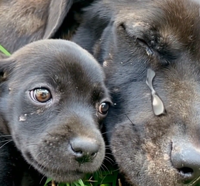 Вона лежала на холодній, напитаній дощем траві, притискаючи до грудей маленьке тепле тільце, і в ту мить здавалося, що навколо більше нічого не існує, ніби зникли дорога, дерева, старий перекошений хлів і навіть сам час, залишивши лише її важке, збите дихання й тихий, ледь чутний писк того, заради кого вона ще трималася за життя. Її морда була напружена, наче щосекунди вона чекала втрати, але найбільше в цьому застиглому виразі вирізнялися сльози — справжні, важкі, що котилися темною шерстю й падали на землю, мов німі свідки болю, який неможливо приховати.