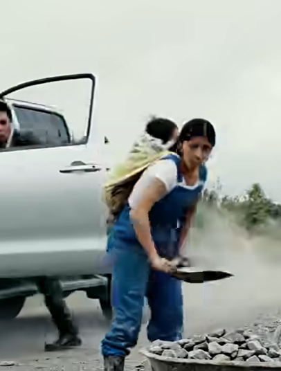 На размытой, грязной дороге, по колено в жиже, стояла женщина в поношенной куртке. Она не просила милостыню. Она на коленях перетаскивала тяжелые камни, аккуратно закладывая ими глубокую, рваную выбоину, которую едва было видно под водой. Рядом, на старом деревянном ящике, продрогший, но спокойный, сидел маленький ребенок.