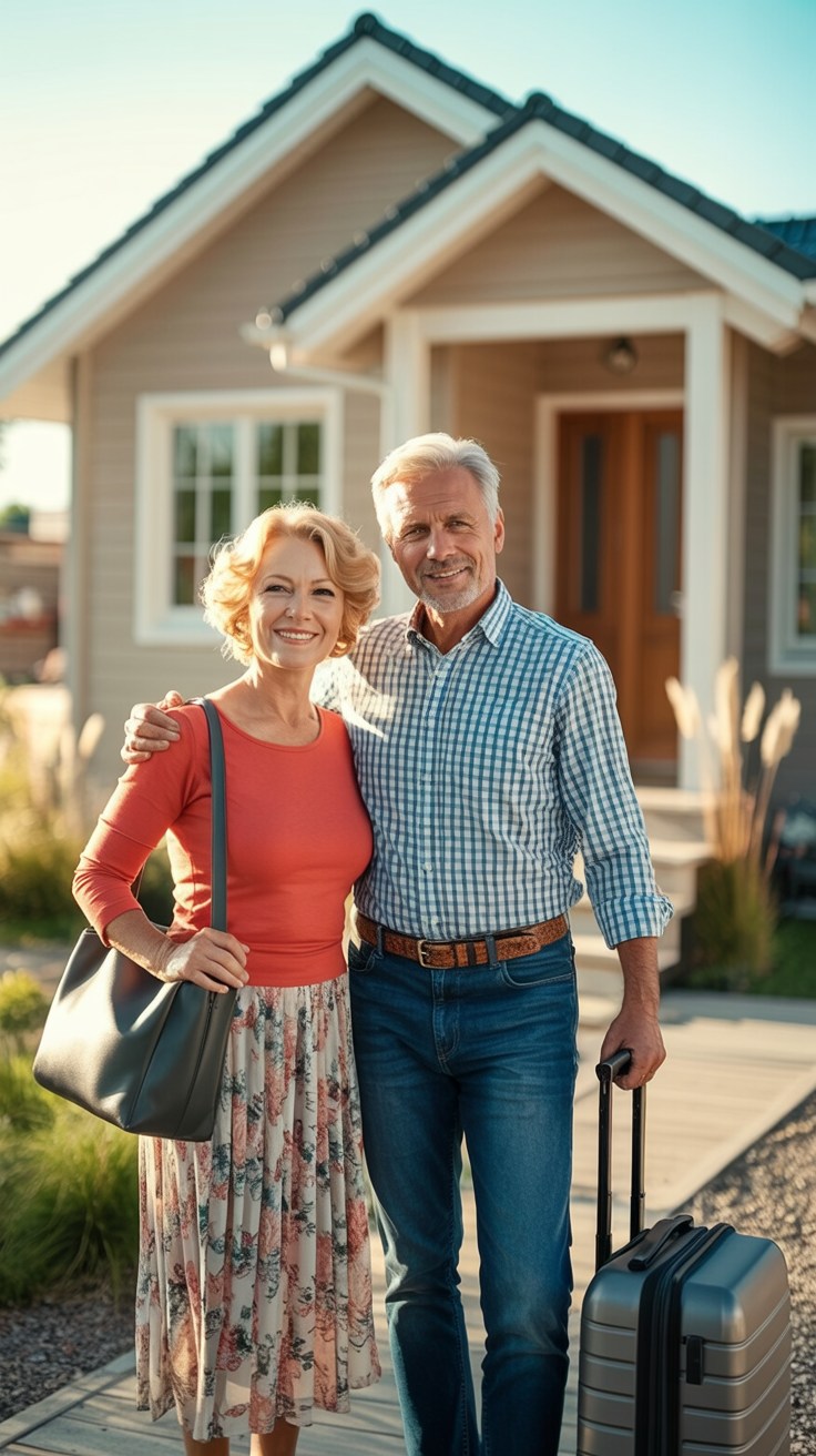 Зимний день был холодным, но все равно манил к себе особенной тишиной. Снежные хлопья тихо падали с неба, словно прикрывая мир невидимой вуалью, создавая ощущение, будто время замедлилось. Лилия и Олег стояли у входа в свой новый дом, с трудом скрывая волнение. Они только что переехали сюда, и этот момент был для них символом нового начала. Лилия в темном пальто с шарфом, Олег в длинном шерстяном костюме — оба были готовы встретить свою новую жизнь в этом большом, красивом доме.