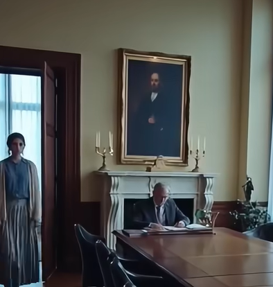 Она остановилась у края стола и спокойно посмотрела на всех сразу. Не дерзко, не вызывающе — спокойно. Так смотрят люди, которые знают больше, чем говорят. В этот момент дверь снова открылась, и в зал вошёл пожилой мужчина с аккуратными седыми волосами и очками в тонкой оправе. В руках он держал кожаную папку, потёртую, но дорогую, как вещи, которые не покупают ради внешнего эффекта.
