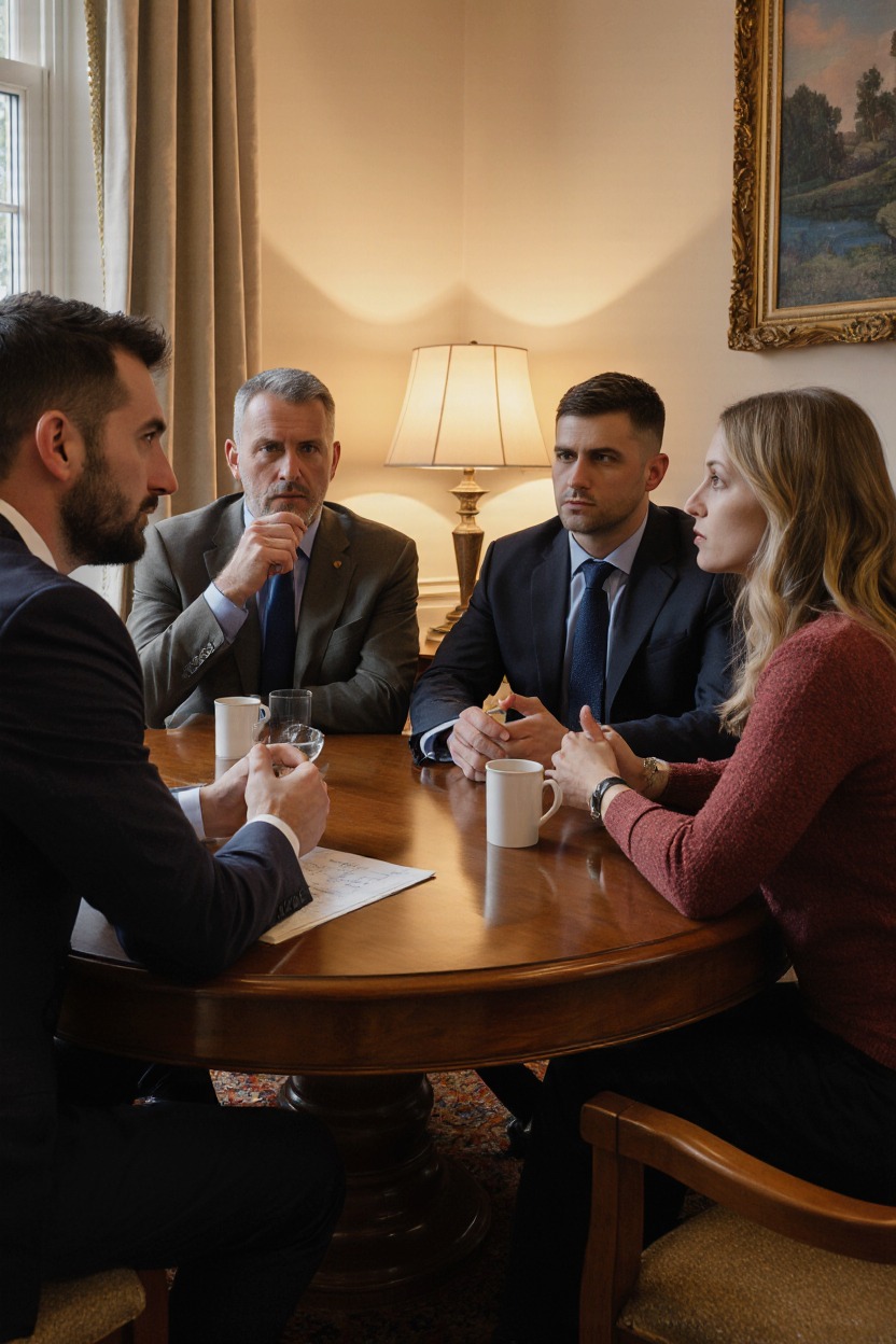 Сергей сидел на диване, его лицо было скрыто полумраком, словно он сам был частью этой темной комнаты. Он молчал. Вера вглядывалась в его безучастный взгляд и понимала: он знал. Он знал то, что она не могла понять. Она подошла к нему, держа в руке этот злополучный лист бумаги, и в сердце разгорался гнев, смешанный с растерянностью.