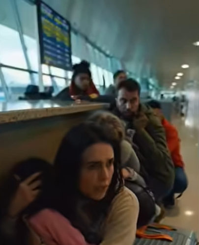 Мать с сыном забились в угол у холодной мраморной стены. Мальчик плачет, но беззвучно — от ужаса у него перехватило дыхание. Офицер медленно приближается к сумке. Вибрация становится всё сильнее.