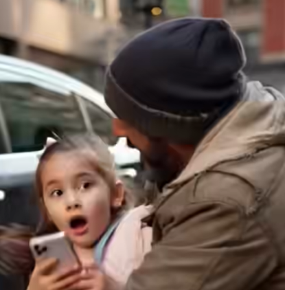 Через мгновение к ним подбежала женщина в деловом костюме. Её лицо было бледным от ужаса, который тут же сменился яростью при виде бродяги, держащего её ребенка. Она вырвала дочь из рук мужчины, прижала её к себе и закричала на всю улицу: