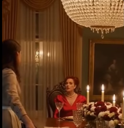 Роскошный обеденный зал поместья Греймонт сиял от блеска хрусталя и серебра. За длинным столом, уставленным изысканными блюдами, сидела Элеонора — статная женщина в шелковом платье изумрудного цвета. Напротив неё стояла юная Анна в поношенной форме прислуги, дрожащими руками удерживая тяжелый поднос.