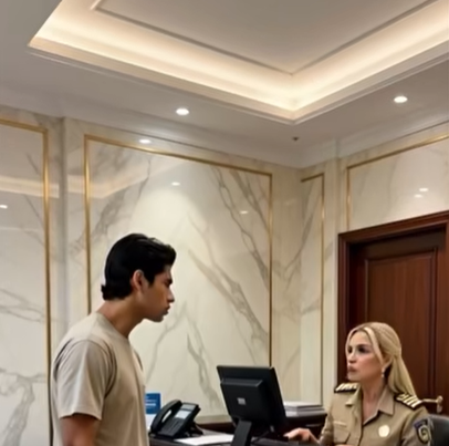 Генерал стремительно входит в салон, игнорируя застывшую от ужаса продавщицу. Он останавливается перед парнем в футболке и отдает честь.